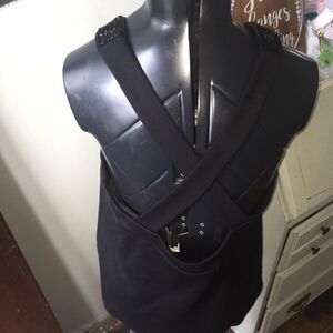 Beautiful, beaded black sleeveless top with keyhole neckline. Heavy knit fabric. In good, used condition. Approximately 21 inches from armpit to armpit, 26 inches long. From a pet and smoke free house. Happy to bundle!