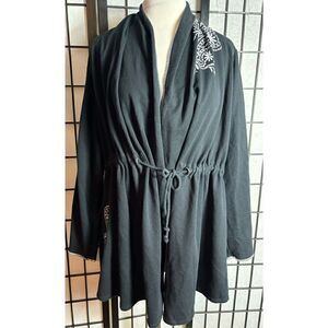 Lane Bryant Black Embroidered Tye Front Cardigan