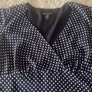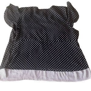This is a great black and white polka dot chiffon blouse by Lane Bryant in a woman’s size 26/28.