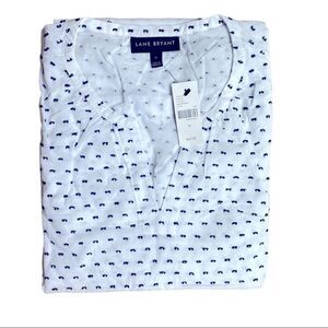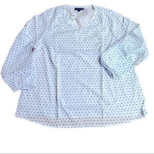 Lane Bryant White Blouse With An Embroidered Style Blue Dotted Swiss Pattern.