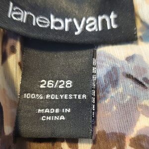 (II) Lane Bryant Floral Pink & Brown Top with ruffle collar. No flaws, size 26/28