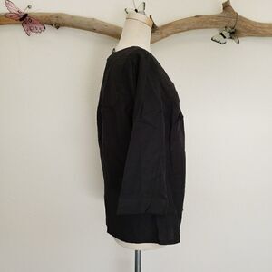 Boho style black tunic top with ties in front. Ties have metal tips. New without tags. Size 14/16