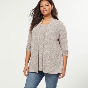 Lane Bryant metallic thread pink gray sparkle open front cardigan Sweater 26/28