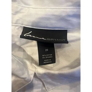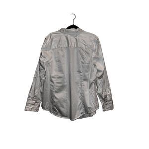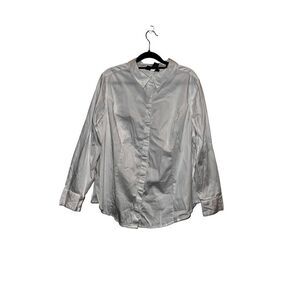 Like new! I don’t believe I have ever worn this but it has been washed so marking as used. White poplin button up shirt with hidden buttons with panel over buttons. Super flattering shape that is slightly curved in with a slight curved hem so can be worn tucked in or out. With the curved line it gives extra room in the chest. Size 20. If you like this shirt but want a pop of color I also have one listed in a Tiffany blue. Does have a little stretch to it.