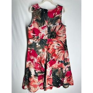 Lanebryant Floral Fit & Flare Sleeveless Midi Dress Size 20 Red Back Zip Pockets
