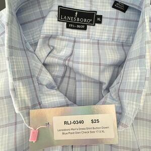 Lanesboro Men's Dress Shirt Button Down Blue Plaid Glen Check
