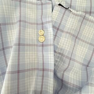 Featuring a timeless blue plaid glen check pattern, this button-down shirt is perfect for any occasion.