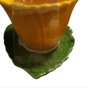 These hand-painted mugs and saucers by Lang Pottery feature a charming April Flowers pattern and a figural shape, making them a unique addition to any dinnerware collection. Made from ceramic with a glossy finish, these mugs are both microwave and dishwasher safe, perfect for everyday use or special occasions. The vibrant multicolor design and floral theme add a touch of artistry to your table setting, while the production technique of pottery ensures durability and quality. Made in China in 2024, these mugs and saucers are sure to be a conversation piece for all occasions.Brighten your dining experience with these charming yellow and green floral mugs. Perfect for adding a touch of nature to your table setting.