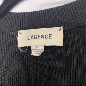 Discover the elegance of L’agence black cardigan, crafted from a luxurious wool blend. This timeless piece features a fitted silhouette, perfect for adding a touch of sophistication to any outfit.