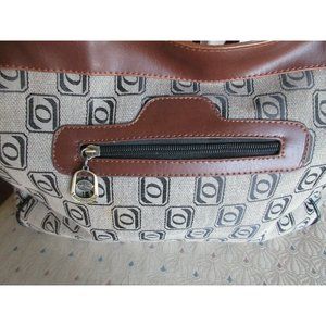 Langshahong Large Zippered Brown Tote Bag Double Handles Faux Leather Trim Mint Cond.