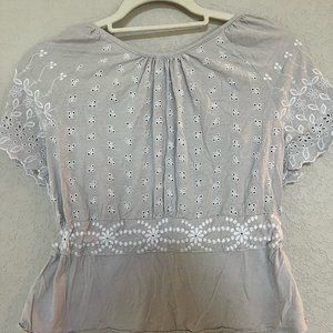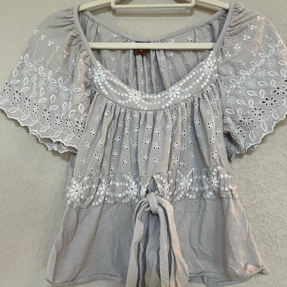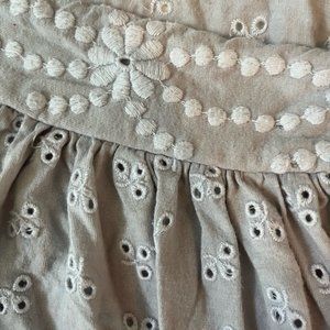 Cropped Embroidered white floral on grey. Draw string, bow tie waist. Size M but fits like S
