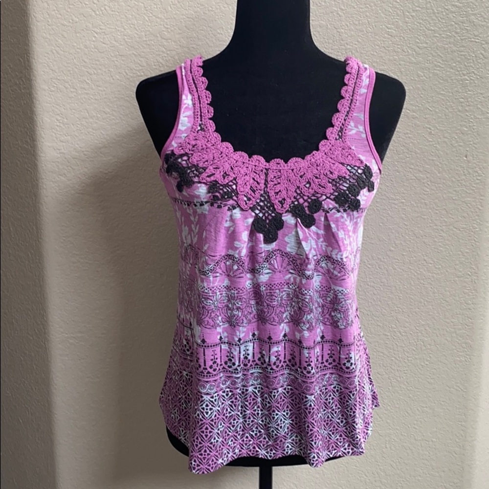 Super cute, gently worn. Multi color purple, black, white. knit across the chest and back. Polyester and rayon.