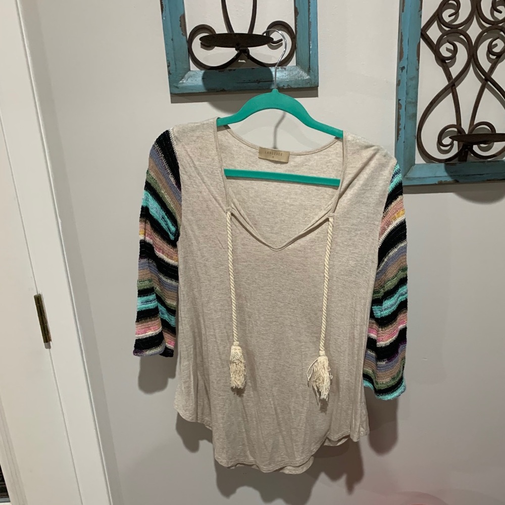 Super cute, soft multi colored sleeved top.