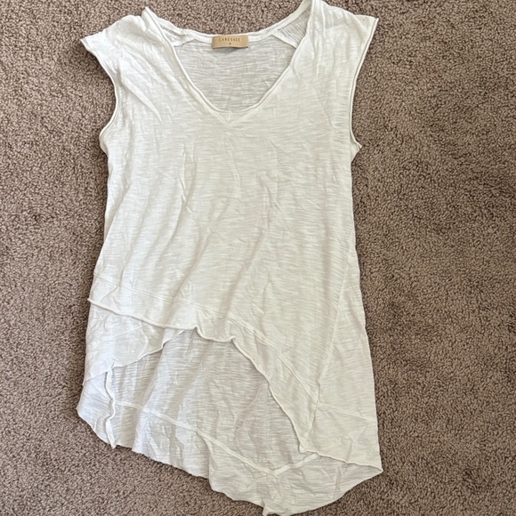 Stylish off-white muscle tee with an asymmetrical hem. Perfect for everyday style.