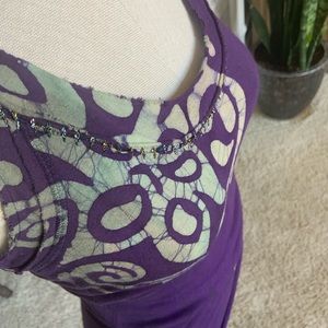 Language batik purple tank with metallic whip stitch accents. Excellent condition, no flaws. Bin 12