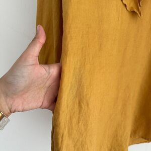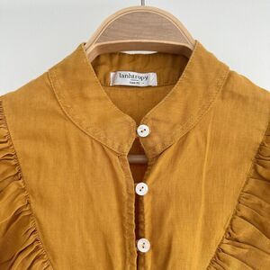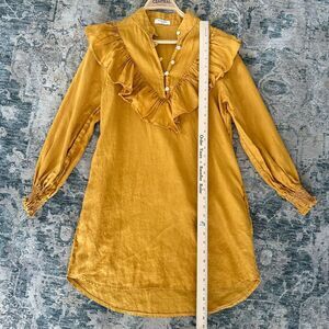 Lanhtropy Dress Womens XS Linen Tunic Flounce Victorian Boho Chic Rustic Mustard