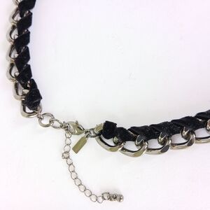 Make a bold statement with this elegant necklace featuring striking blue accents. Perfect for adding a touch of sophistication to any outfit. Black velvet wrapped chain.
