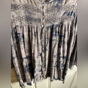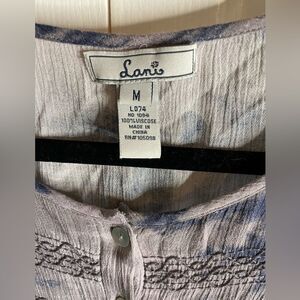 Lani Womens Boho Long Sleeve Button Front Blouse Top Brown Medium