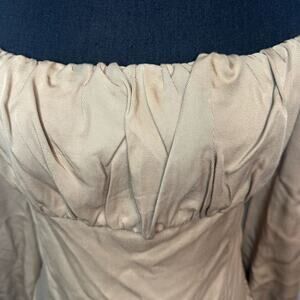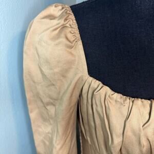 Lani the Label Tan Bodysuit | Ruched Square Neck | Balloon Sleeve | Size M