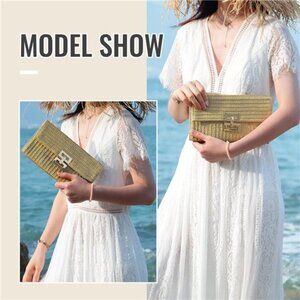 → Summer Essential: This straw purse is an essential item for the summer season. With its natural and earthy texture, this rattan clutch effortlessly blends with various summer outfits, adding a touch of bohemian charm to your look.
