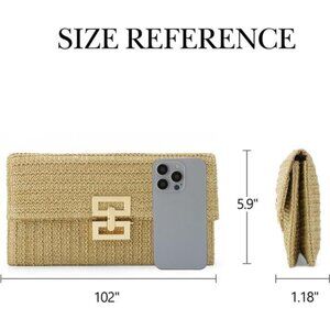 → Capacity: 10.2” x 5.9” x 1.2” INCH /(26 x 15 x 3 CM), straw clutch features three compartments, allowing for convenient organization of belongings. It’s easy to put your essentials like phone, sunglasses, and sunscreen, allowing you to enjoy the sun and waves with ease.