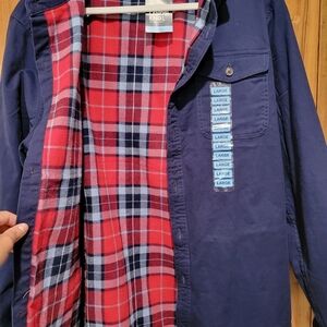 Lans End Men's Blue Jacket with Red Plaid Lining