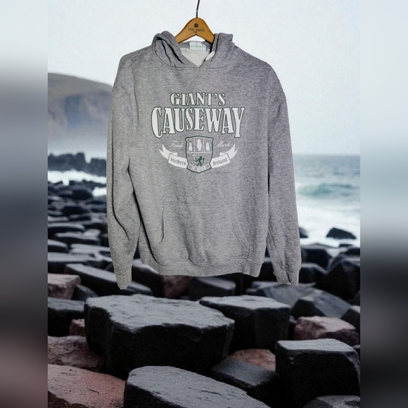 Stay cozy and stylish with this gray Giant's Causeway hoodie. Perfect for casual outings and showcasing your love for iconic landmarks.