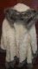 Stay warm and stylish with the faux fur coat. This elegant white coat features gray accents, perfect for a chic winter look.