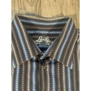 Lansky Bros shirt Mens Black blue geometric Triangle flip cuff Pattern XXL