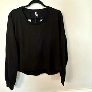 Lanston Back Cut-Out Sweatshirt Cotton Blend Long Sleeve in Black Size L NWT