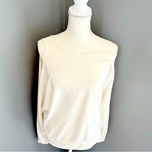 Lanston Minimalist Off-Shoulder Cream Slouchy Sweatshirt Relaxed Top Sz L NWT