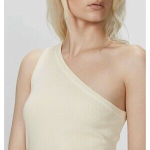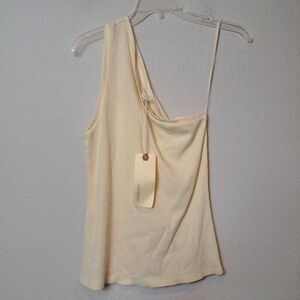 Lanston Revolve Declan One Shoulder Tank Top in Butter Ribbed Stretch Womens XS NWT