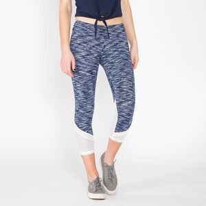 Lanston Sport Leggings Small Cropped Navy White Heather Stripe Mesh Calf NWT