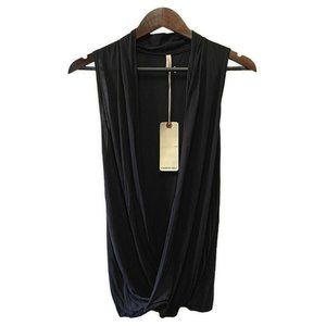 Lanston Women's Small Solid Sleeveless Crossfront Siro Micro Modal Shirt Black MSRP $136