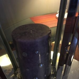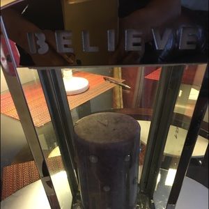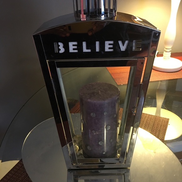 Sale Final Glass trimmed silver lantern engraved the word BELIEVE on Both sides . Beautiful studded lavender candle crystal like stone place in the bottom of lantern .