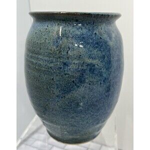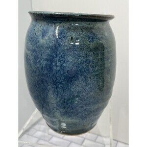 Lantern Hill Pottery Seagrove NC Signed Vase Blue Primitive Country Farmhouse