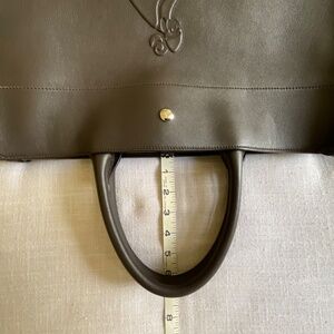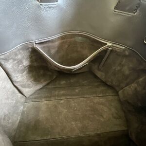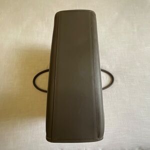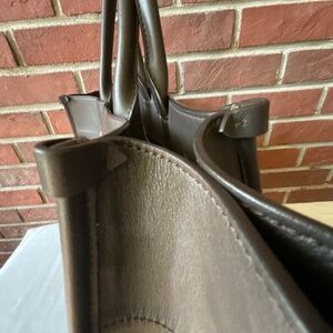 Lanvin Paris, # 22115 .Authenticated already on another selling page. Tote Bag Baratas In & Out MM Tote bag.Dark Brown calf leather.Embossed Baratas with Brand name logo on one side and large brand name logo on another side.Sides are with snap closure.Silver hardware.Brown Suede lining. Interior zip compartment