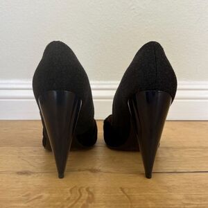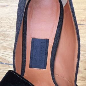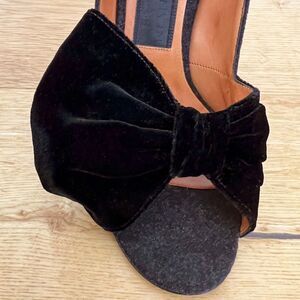 Lanvin Black Felt and Velvet Bow, Navy Heel Open Toe Pumps Size 39.5