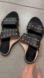 Elegant black sandals with striking gold studs. Perfect for a stylish look.