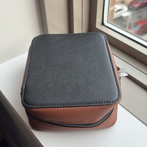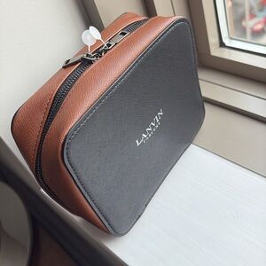 Lanvin Black and zip around Brown Toiletry Bag with Luxurious Leather Finish