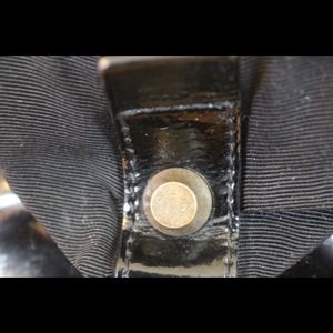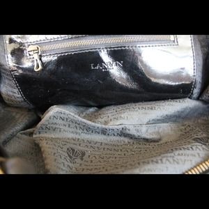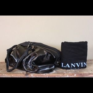 Pre owned. Authentic Lanvin. Good condition with light wear all around in and out. Light markings on exterior. Black patent leather, extra large size.