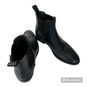 Lanvin Black Calfskin Leather Chelsea Ankle Boots, Size 7. Worn once. Excellent condition. Smooth leather design, slight leather block heel, reinforced round toe, elastic side inserts.