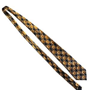 Lanvin Floral Checker Patterned Printed Copper Brown Grey 100% Silk Tie