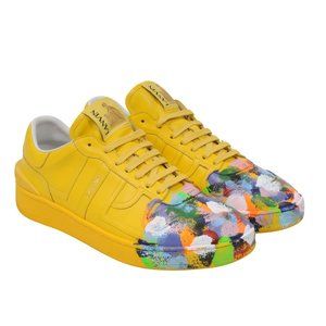 Lanvin Gallery Dept Mens Clay Sneaker US10 43 Yellow Leather Multicolor Painted