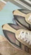 Green/Grey/Beige sneakers with transparent panels on toe and sides. The color of your socks can change the appearance a little (see reference pics). Added video to show transparency panel. Minimal creasing at front. Lanvin sneakers run large with this style, this is a 40 (7), but fits better on a size US 8. Sneakers will give a little height. Also, sole is still fairly firm as it’s only been worn a few times.