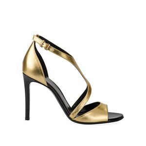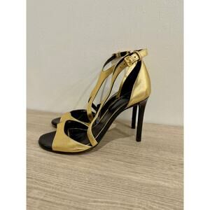 Lanvin Metallic Leather Slip On Ankle Strappy Heels Gold/Black Womens Size EU 37