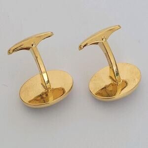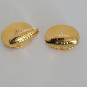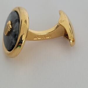 Lanvin Oval Cufflinks Gold Gray MarbelTone French Designer Retro Made In Germany