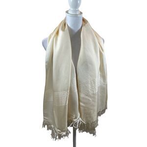 Lanvin Paris 100% Silk Ivory Fringe End Scarf Appr 51”x28”