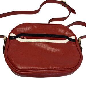 Lanvin Paris Red Leather Crossbody Bag With Black & White Trim