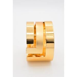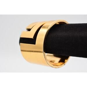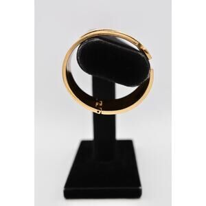 Lanvin Paris Vintage Bangle Bracelet Hinged Chunky Shiny Gold Tone Signed Bin4